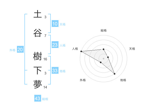 土谷 樹下夢さんを姓名の画数から五運を鑑定