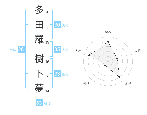 多田羅 樹下夢さんを姓名の画数から五運を鑑定