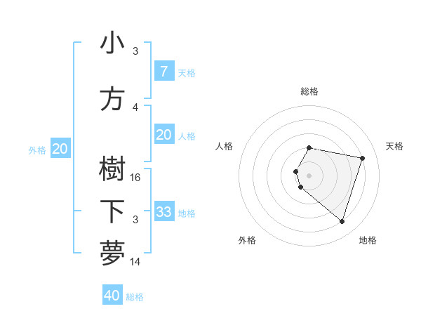 小方 樹下夢さんの総格は40画の2点!