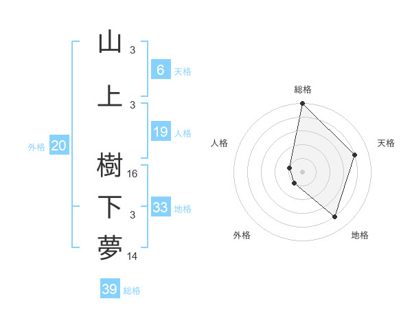 山上 樹下夢さんを姓名の画数から五運を鑑定