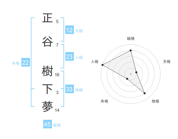 正谷 樹下夢さんの総格は45画の4点!