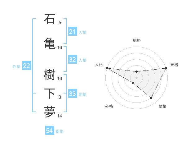 石亀 樹下夢さんを姓名の画数から五運を鑑定
