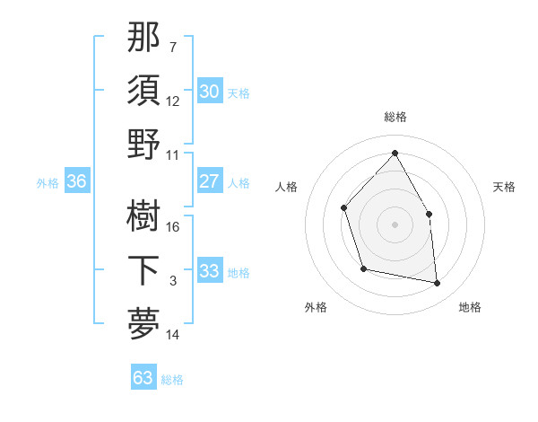 那須野 樹下夢さんを姓名の画数から五運を鑑定