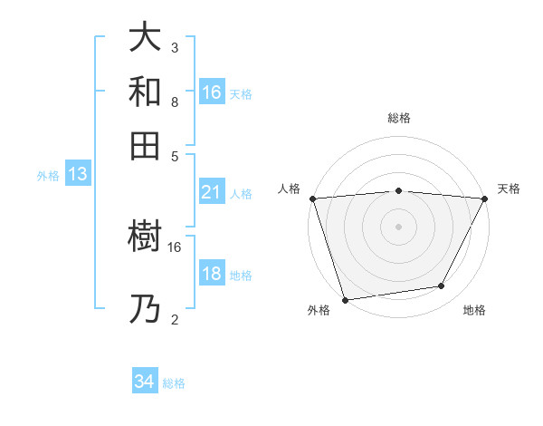 大和田 樹乃さんの天格は16画の5点!