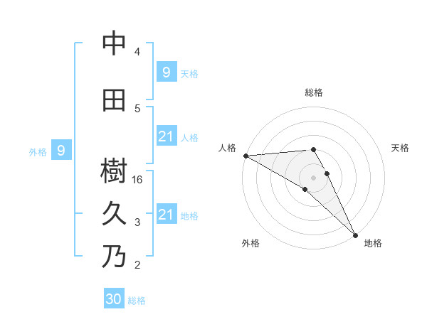 中田 樹久乃さんを姓名の画数から五運を鑑定