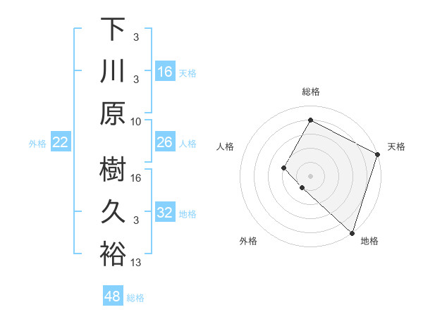 下川原 樹久裕さんを姓名の画数から五運を鑑定