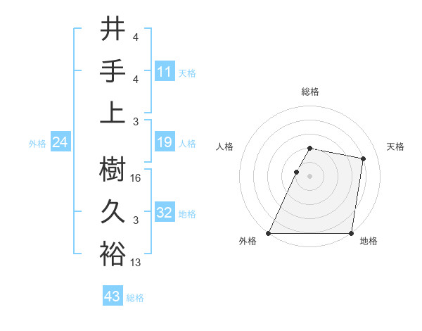 井手上 樹久裕さんを姓名の画数から五運を鑑定