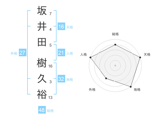 坂井田 樹久裕さんを姓名の画数から五運を鑑定