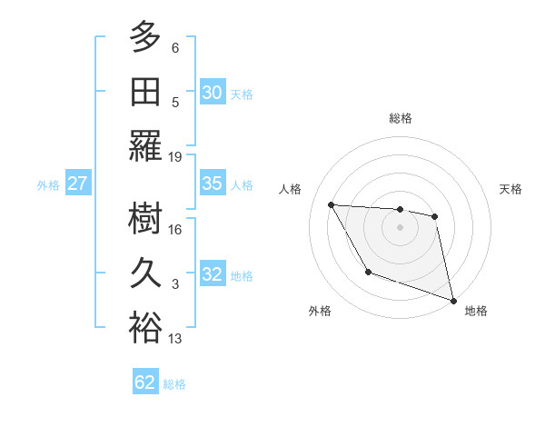 多田羅 樹久裕さんを姓名の画数から五運を鑑定