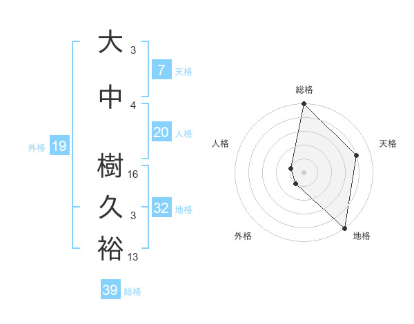 大中 樹久裕さんの総格は39画の5点!