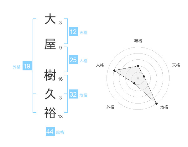 大屋 樹久裕さんの地格は32画の5点!