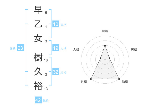 早乙女 樹久裕さんを姓名の画数から五運を鑑定