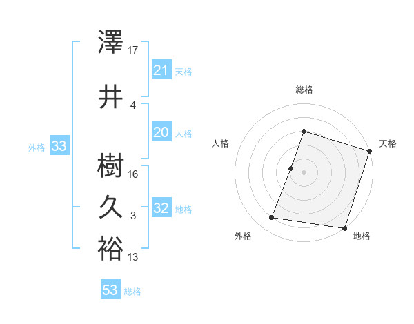 澤井 樹久裕さんを姓名の画数から五運を鑑定
