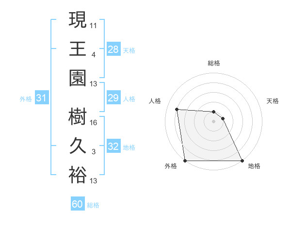 現王園 樹久裕さんを姓名の画数から五運を鑑定