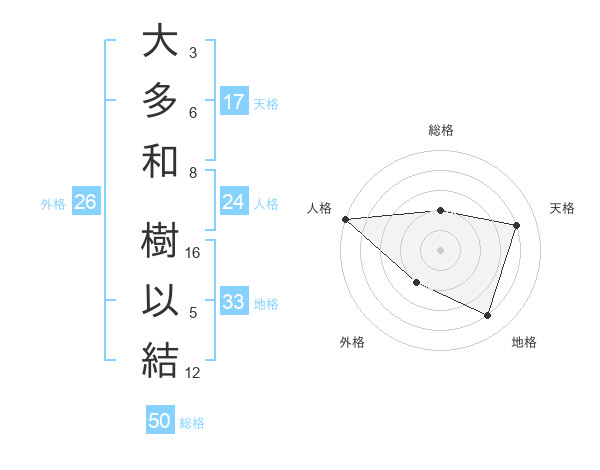 大多和 樹以結さんを姓名の画数から五運を鑑定