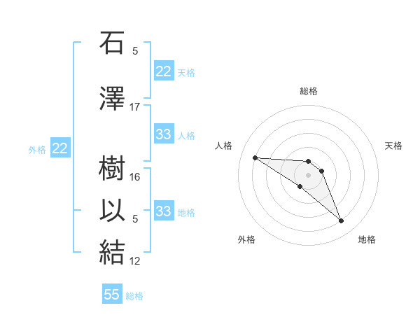 石澤 樹以結さんの外格は22画の1点!