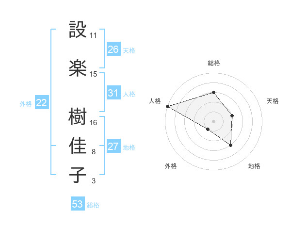 設楽 樹佳子さんの総格は53画の3点