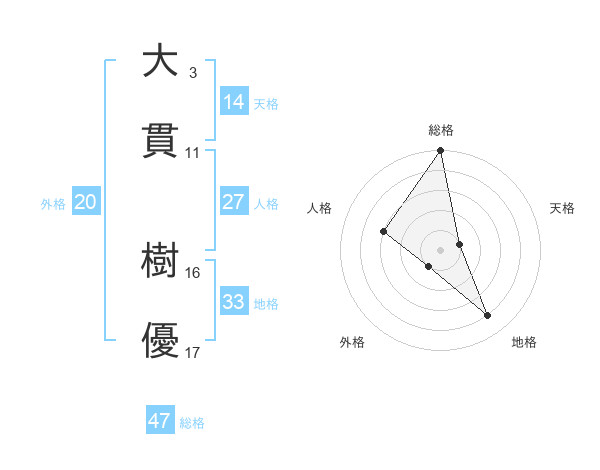 大貫 樹優さんの総格は47画の5点!