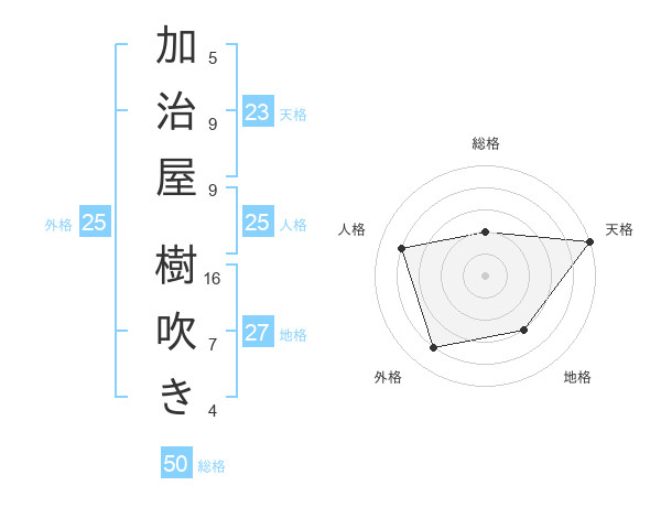 加治屋 樹吹きさんを姓名の画数から五運を鑑定
