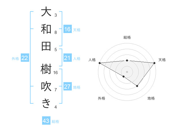 大和田 樹吹きさんを姓名の画数から五運を鑑定