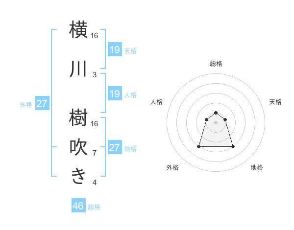 横川 樹吹きさんを姓名の画数から五運を鑑定