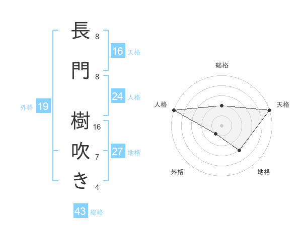 長門 樹吹きさんの天格は16画の5点