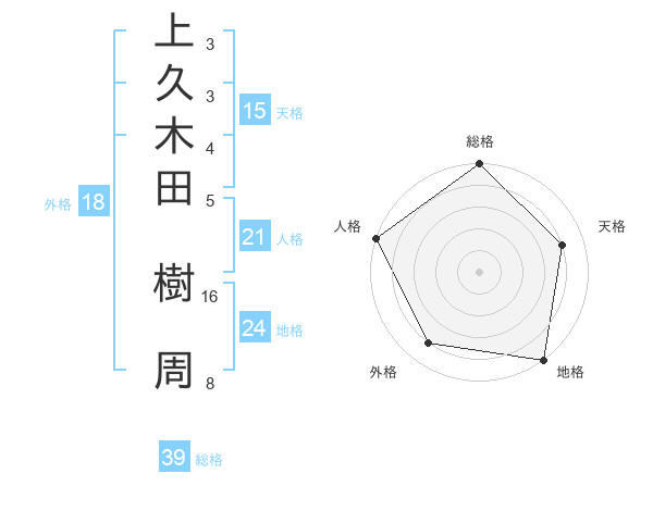 上久木田 樹周さんを姓名の画数から五運を鑑定