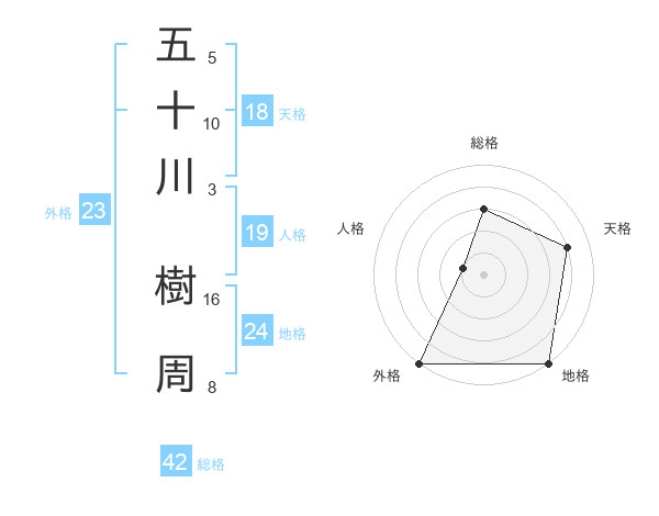五十川 樹周さんを姓名の画数から五運を鑑定