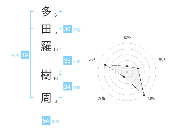 多田羅 樹周さんを姓名の画数から五運を鑑定
