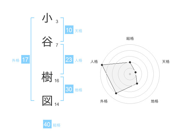 小谷 樹図さんの総格は40画の2点!