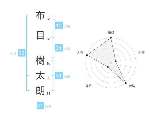 布目 樹太朗さんの総格は41画の5点!