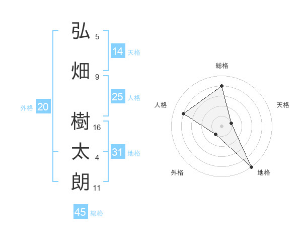 弘畑 樹太朗さんを姓名の画数から五運を鑑定