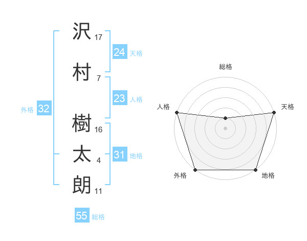 沢村 樹太朗さんを姓名の画数から五運を鑑定