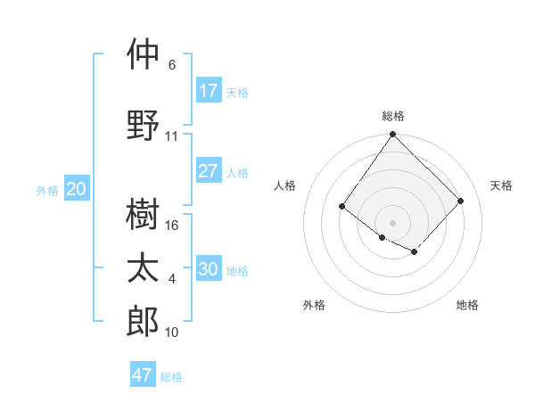 仲野 樹太郎さんの総格は47画の5点