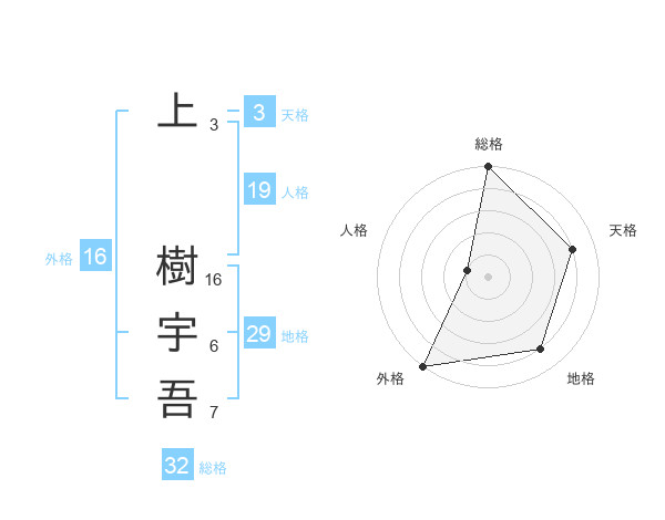 上 樹宇吾さんを姓名の画数から五運を鑑定