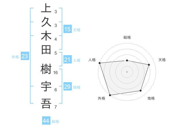 上久木田 樹宇吾さんの外格は23画の5点