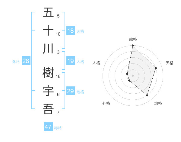 五十川 樹宇吾さんを姓名の画数から五運を鑑定