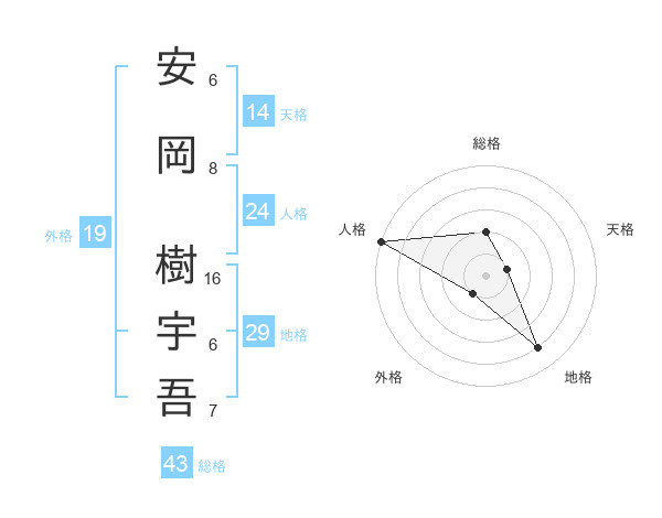 安岡 樹宇吾さんを姓名の画数から五運を鑑定