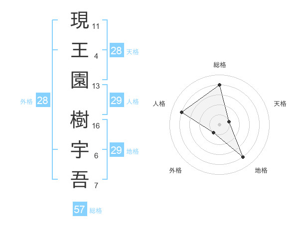 現王園 樹宇吾さんを姓名の画数から五運を鑑定