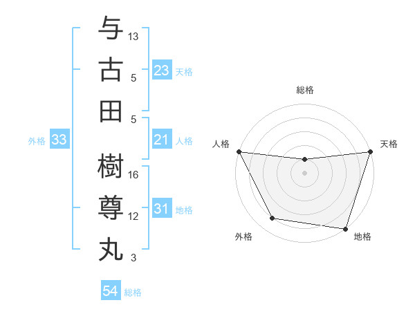 与古田 樹尊丸さんの外格は33画の4点