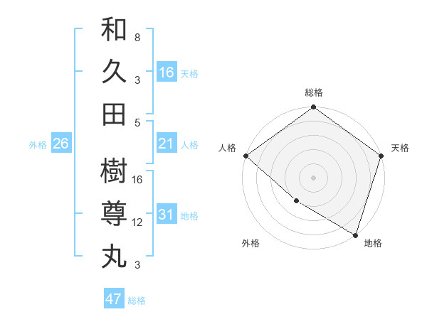 和久田 樹尊丸さんを姓名の画数から五運を鑑定