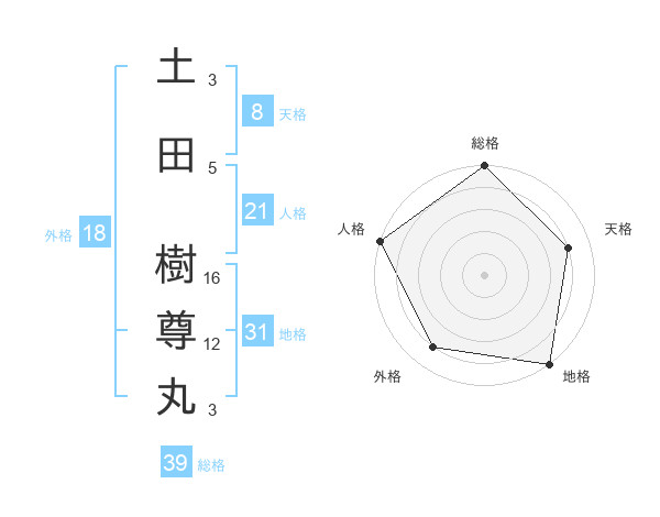 土田 樹尊丸さんを姓名の画数から五運を鑑定
