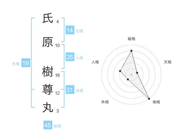 氏原 樹尊丸さんを姓名の画数から五運を鑑定