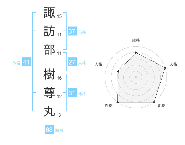 諏訪部 樹尊丸さんの天格は37画の5点!