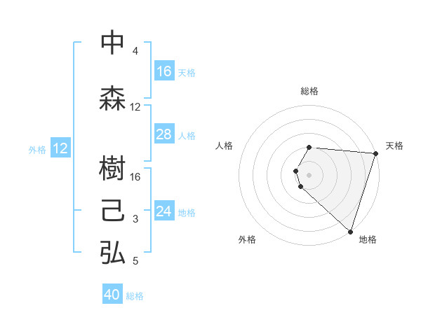 中森 樹己弘さんを姓名の画数から五運を鑑定
