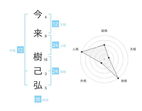 今来 樹己弘さんを姓名の画数から五運を鑑定
