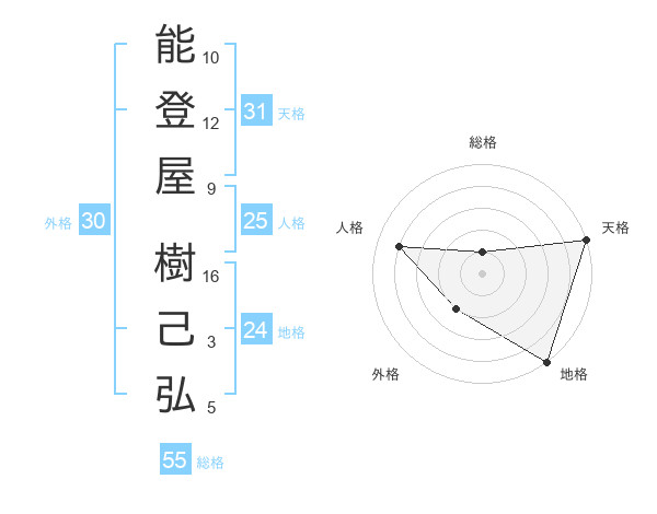 能登屋 樹己弘さんを姓名の画数から五運を鑑定
