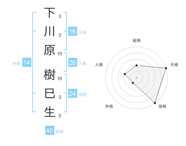 下川原 樹巳生さんを姓名の画数から五運を鑑定