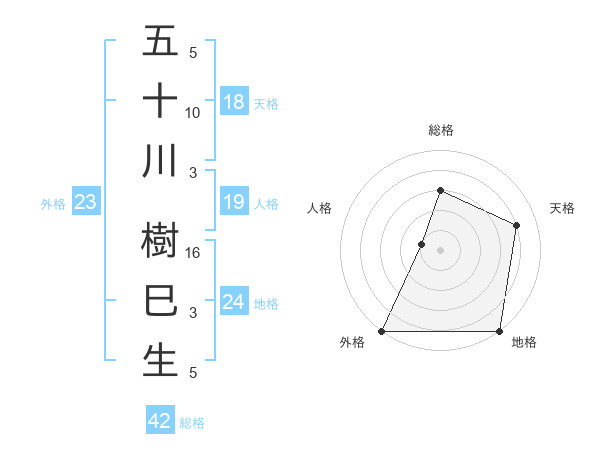五十川 樹巳生さんを姓名の画数から五運を鑑定
