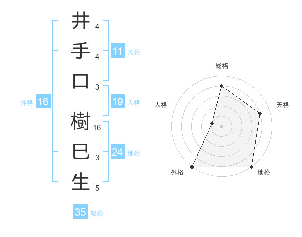 井手口 樹巳生さんを姓名の画数から五運を鑑定